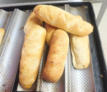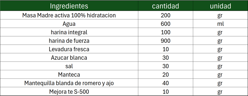 Pan para panino elaborado con los mejores ingrediente y nuestra masa madre, acompañado de una mantequilla artesanal de ajo con romero que nosotros mismos preparamos.
